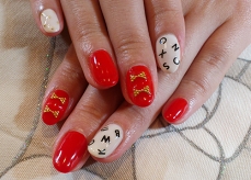 【ジェルネイル75分コース】リボンとアルファベットがキュートなデザイン
